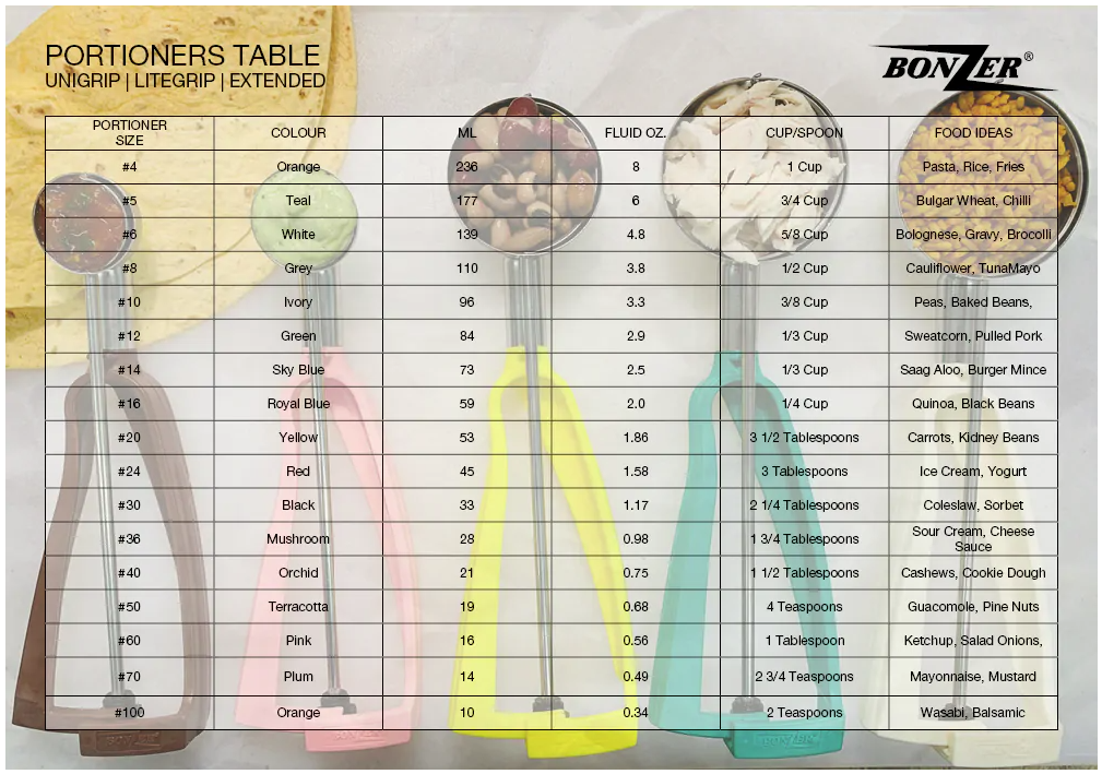 A robust and ergonomically designed portioner, featuring a food grade stainless steel bowl with an advanced scraper mechanism for quick and easy food release. The stable hand squeeze motion is suited to more stubborn substances such as mashed potatoes, vegetables and soft ice cream.